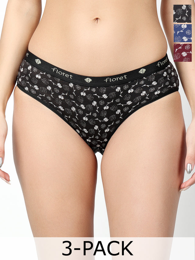 Floret Basic Floral Bliss: Mid-Rise Cotton Briefs (Pack of 3) - Classic 8920