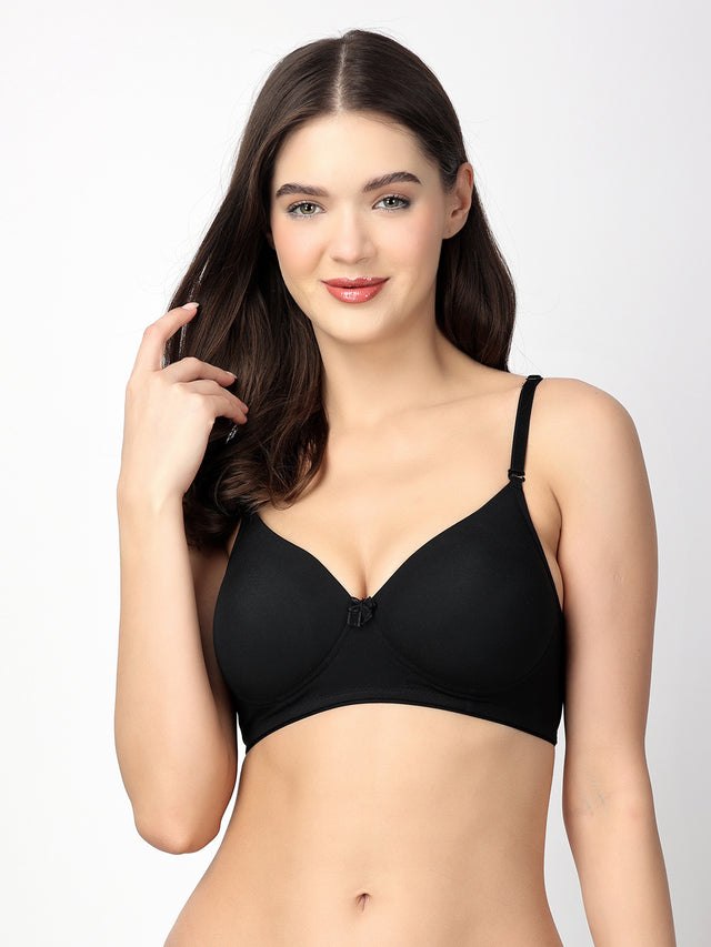 The SHIPRA Floret T-Shirt Bra is a versatile and comfortable bra designed to provide medium coverage and a seamless look under clothing. Made from a blend of polyester, elastane, and Lycra, this bra offers a lightly padded, non-wired construction for a natural and supportive fit. The multiway design allows for various wearing options, and the back closure ensures a secure and adjustable fit. With a solid design and a seamless silhouette, this bra delivers a smooth and flattering appearance under both casual and formal attire.